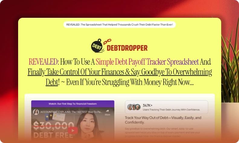 This debt payoff tracker landing page converts well with real-user results (‘$6.5M+ paid off’) and clear value, but lacks urgency triggers and trust badges.